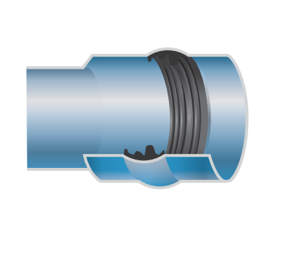 La unión con anillo Rieber de la tubería permite un rápido ensamble y unión hermética. El material elastomérico colocado en la campana provee un sello hermético que protege la unión de la tubería contra vibraciones, movimientos de tierra y compensaciones por dilatación y contracción, además de asegurar que no se desprenderá durante el ensamble.