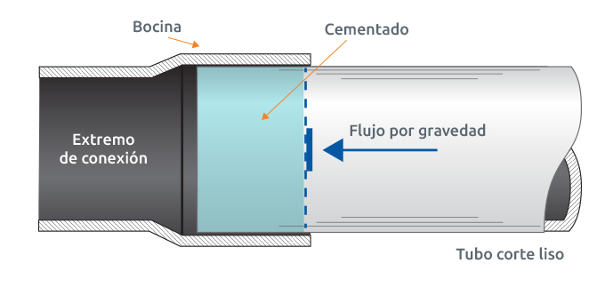 Unión mediante cementado con tubería sistema métrico. Para uso en plomería y sistemas sanitarios.